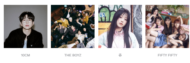 - 10CM, THE BOYZ, 츄, FIFTY FIFTY 등