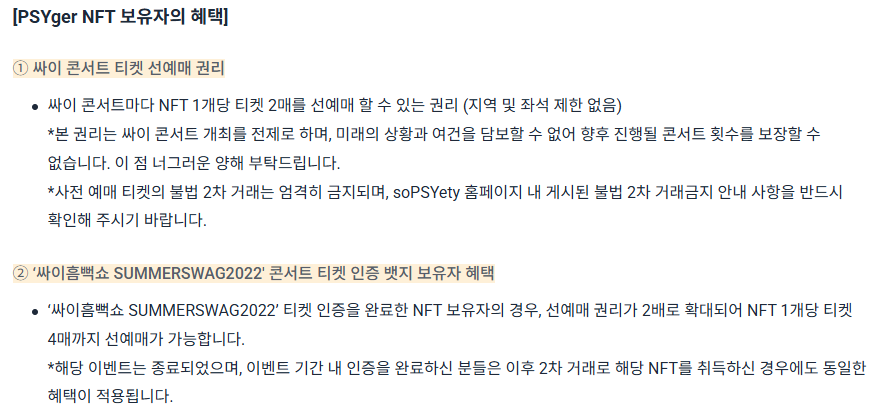 NFT(Psyger)를 보유하면 일반 예매보다 훨씬 유리한 선예매가 가능합니다.